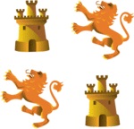 3. DOS TORRES Y DOS LEONES, que corresponde al escudo de armas del Rey de España y que vendrían a representar a los Reinos de Castilla y León.